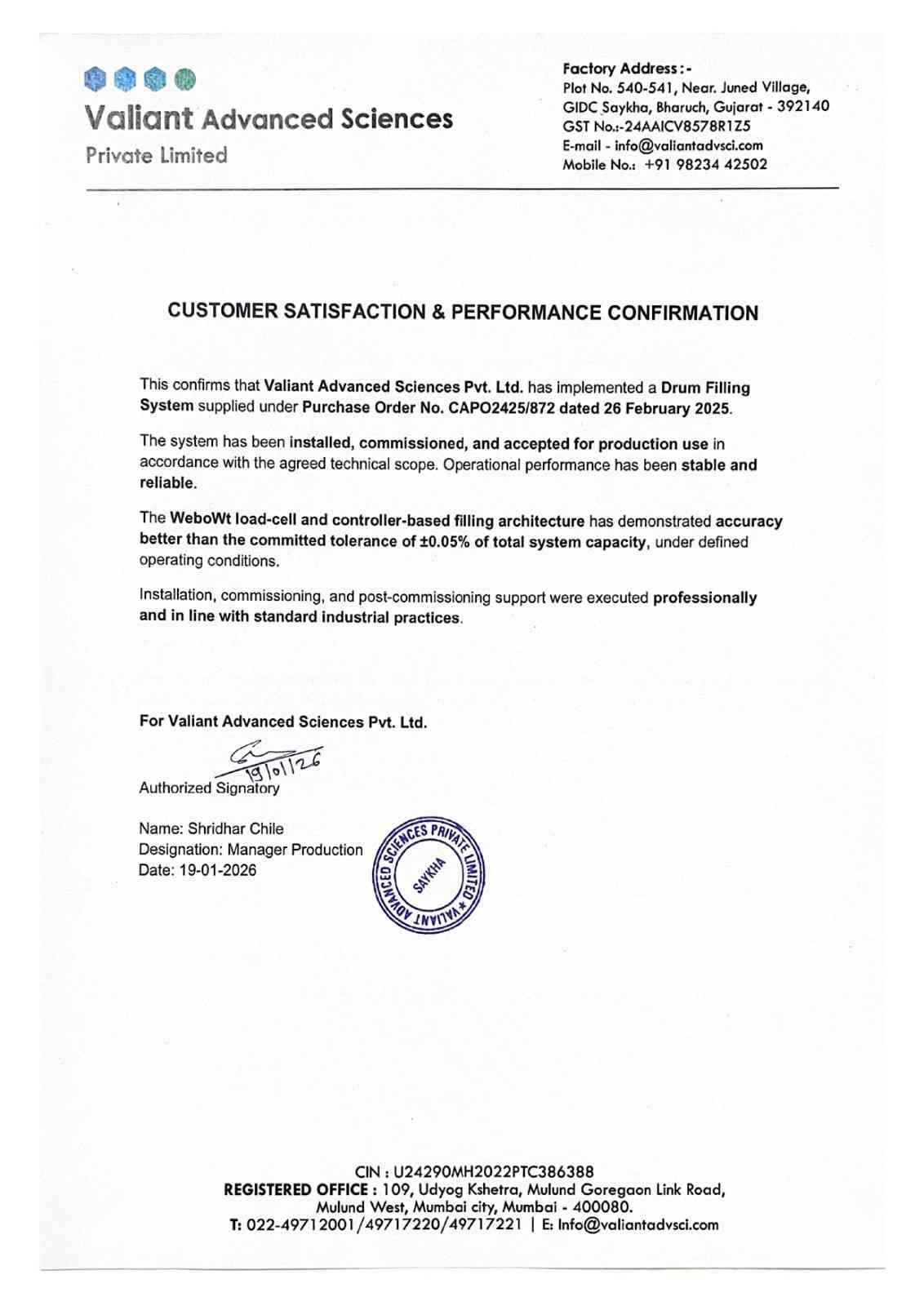 We are highly satisfied with the performance, quality & Technology of Quadrafill.